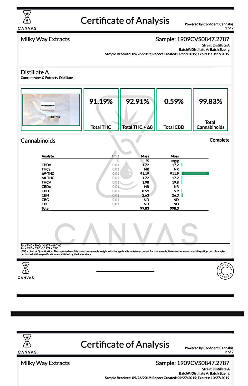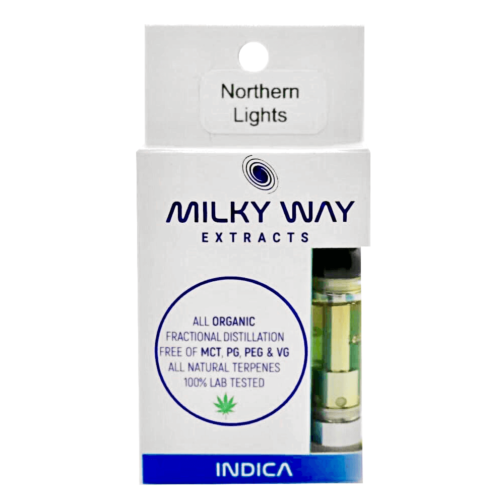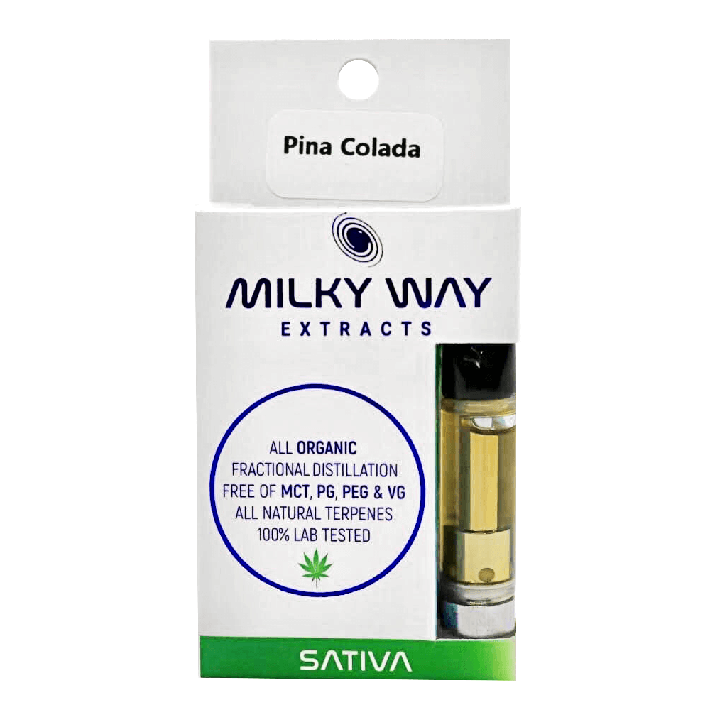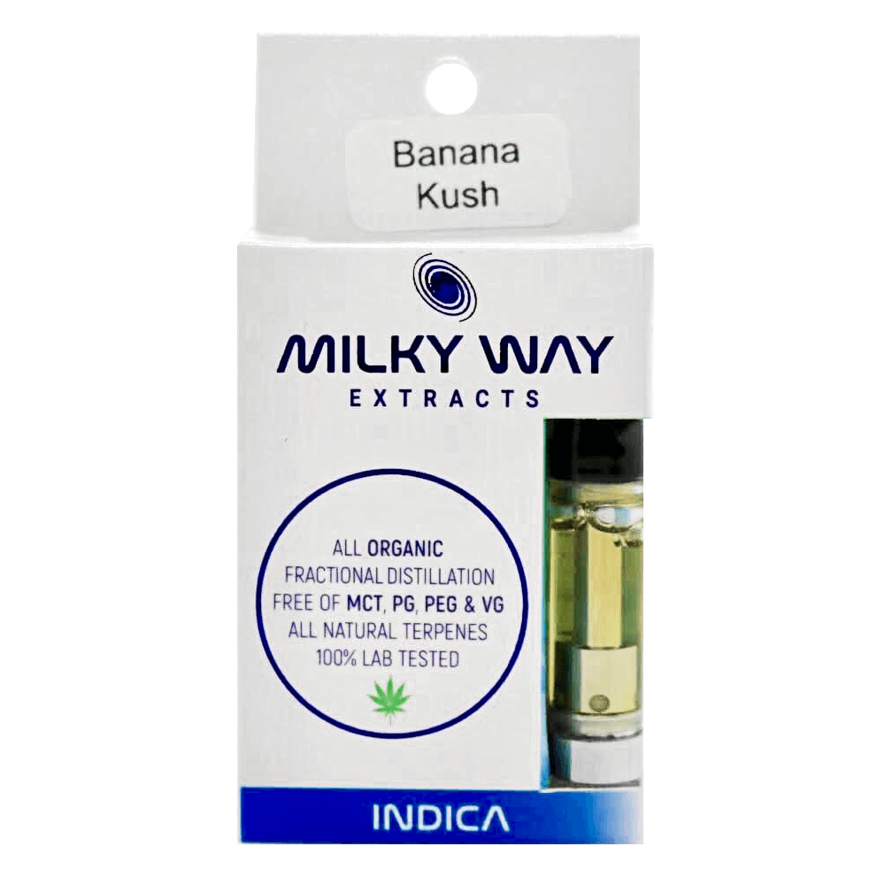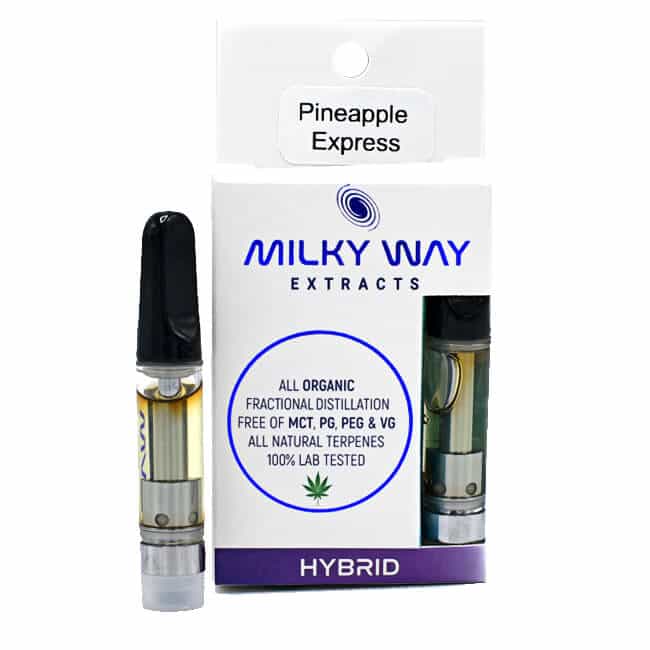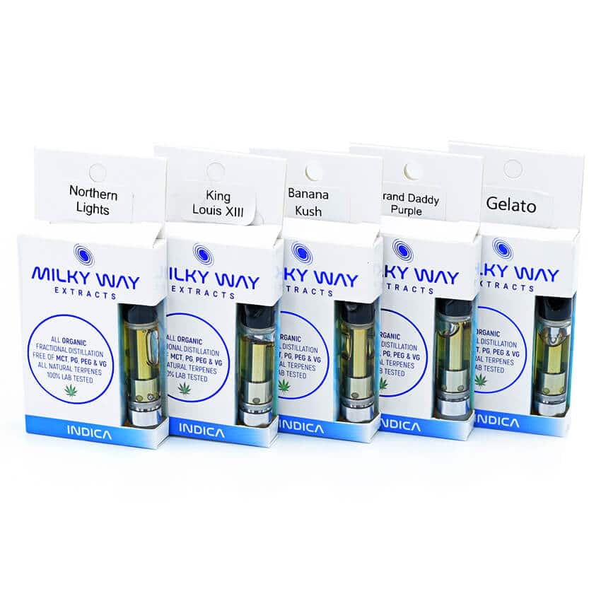 1g/cart. Milky Way Extracts vape cartridges contain superior grade distillate and strain specific terpenes. These cartridges have a total cannabinoid profile above 95% and total THC content is above 90%. The strain specific terpenes used are organic and all natural. Free from MCT, PG, PEG or VG and lab tested every batch. Does not include battery