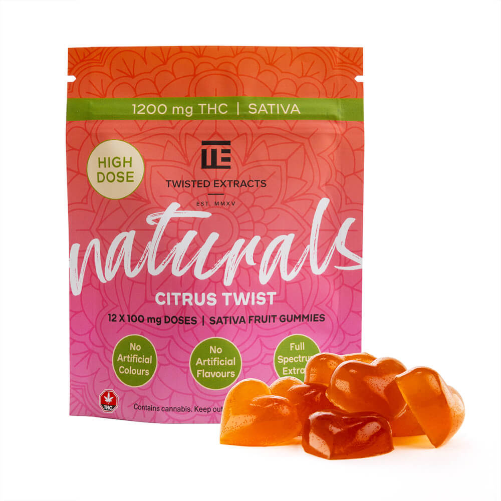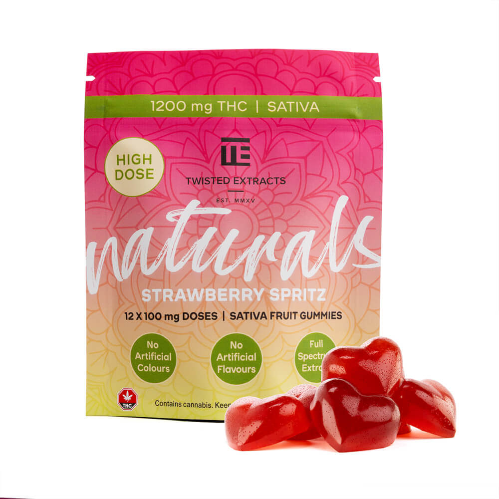 1200 mg THC per package 12 x 100 mg THC gummies or 200 mg THC per package 10 x 20 mg THC gummies