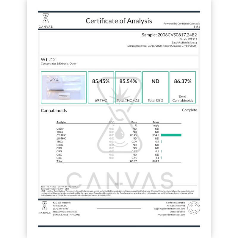 Twisted Distillate is a unique blend of cannabinoids that focuses on Delta 8 as its primary power source instead of the standard Delta 9.  Delta 8 provides a smoother buzz that users will perceive as calmer than Delta 9 only, while still very strong. The combined full spectrum blend of 96% cannabinoids is extremely powerful and not for lightweights!